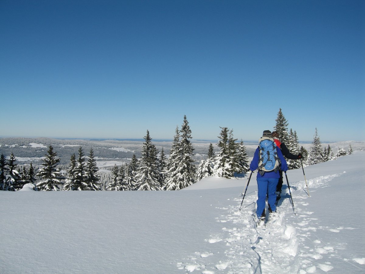 Du chalet, au travers des pâturages boisés enneigés nous montons pour atteindre le sommet du Mont Tendre, nous suivons la crête et faisons une boucle pour redescendre au chalet.